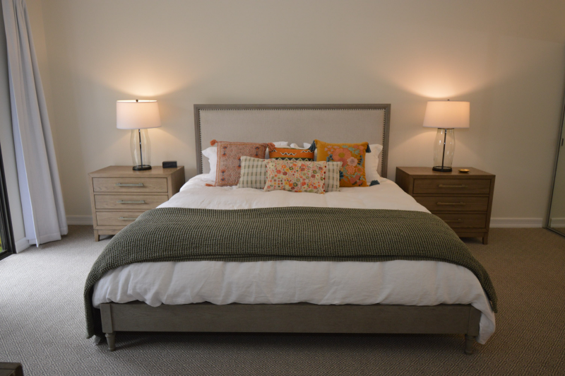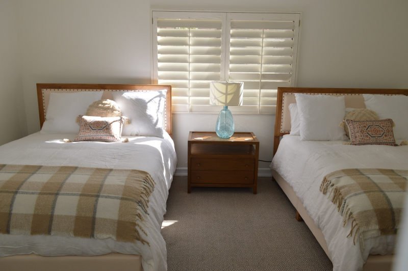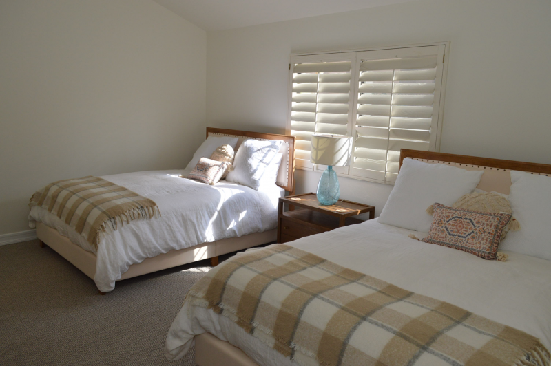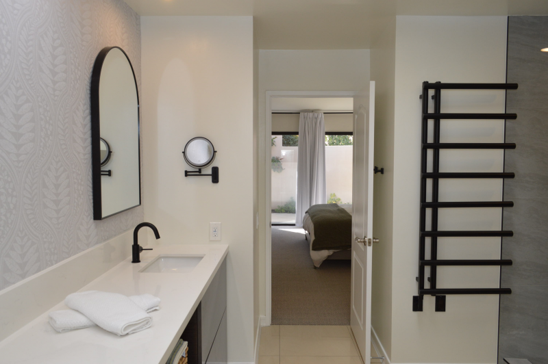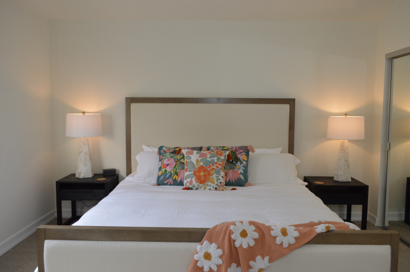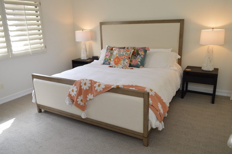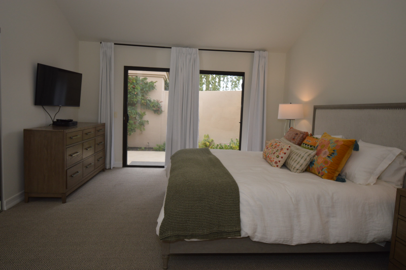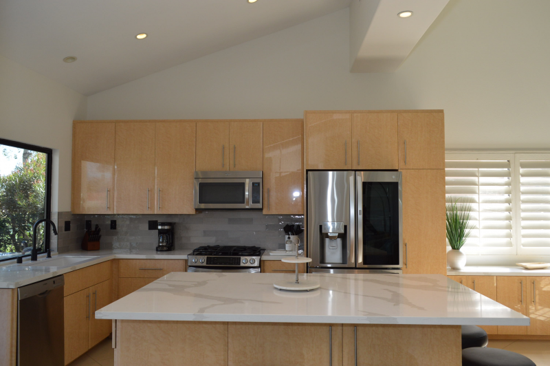 This Sycamore floor-planned home of approximately 2,000 square feet has an updated design of contemporary finishes featured in the flooring, surfaces, appliances, and fixtures. Bonuses include a tiled, floor-to-ceiling fireplace in the main living area and a generous use of glass with a slider to the patio of incredible lake and mountain views. Access to the kitchen is via a second slider where the kitchen is equipped with stainless appliances (gas stove) and an over-sized island for dining and prep that is adjacent to a separate dining space. More bonuses include two ensuite bedrooms with king beds--one with a private courtyard, a guest bathroom and bedroom with two double beds, Smart TVs in every room, a separate laundry room, and a garage attached to the front courtyard that houses a golf cart that is available for use. No Pets or children under 6 years old. The City of Palm Desert Permit #STR2024-0126. PMI Coachella Valley #1992806