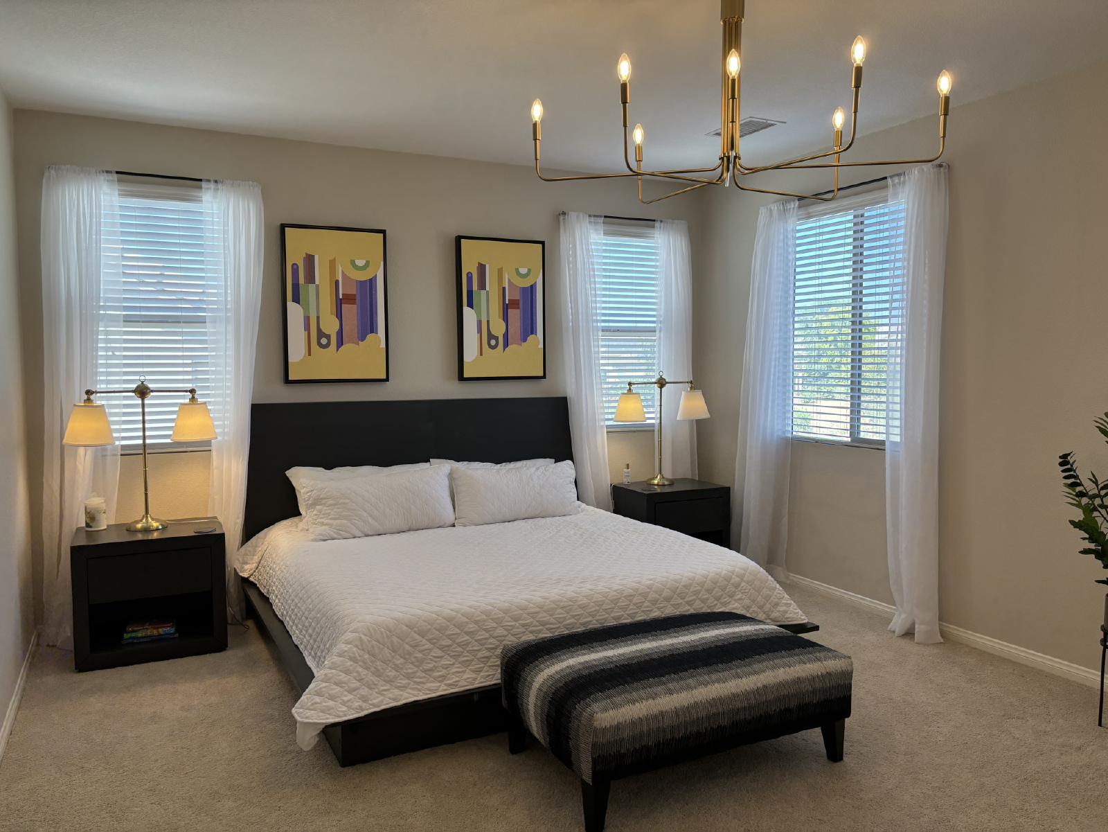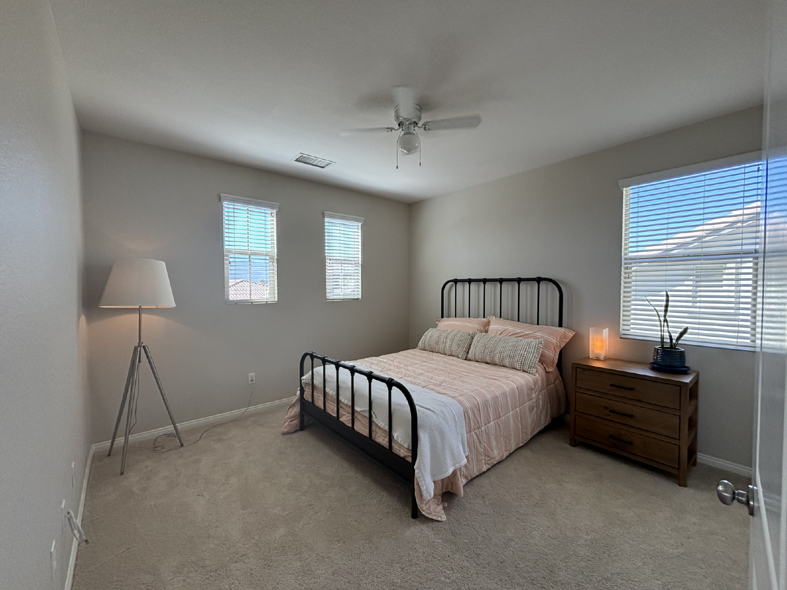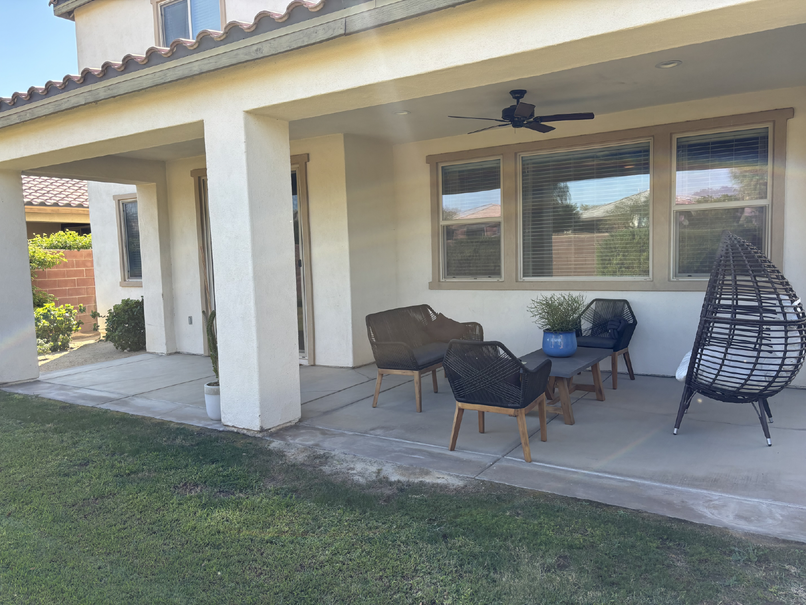 This gated community caters to seniors 55* years young! The Polo Club, a private, hospitality-staffed Resort Club has amenities galore that include sports, hiking/biking trails, entertainment, dining (at June Hills’ Table, the signature restaurant), fitness, and social events (including virtually!). With the Santa Rosa Mountains as a back-drop, homes in this community feature a modern design in their indoor/outdoor living and social spaces. The essentials of this home include four bedrooms and bathrooms (double-vanity, separate shower, commode room and garden tub attached to main bedroom). The bonuses include a front courtyard and double-door entry to the foyer and lounge, a separate dining room, a second-story family room, laundry room with storage and access to the attached 2-car garage, and over 1800 square feet of living space designed with a living area area open to kitchen, plantation shutters and ceiling fans throughout. Available for a minimum 30-days to stay Sep-Dec $5,000, Jan-Mar $6,000, April $10,000, May-Aug $4,000 plus housekeeping and security damage insurance waiver; optional fees include credit card, pet, and early check-in and out. PMI-Coachella Valley DRE #01992806