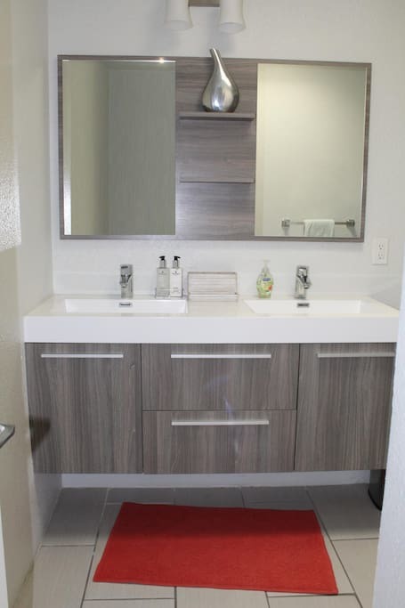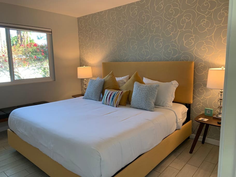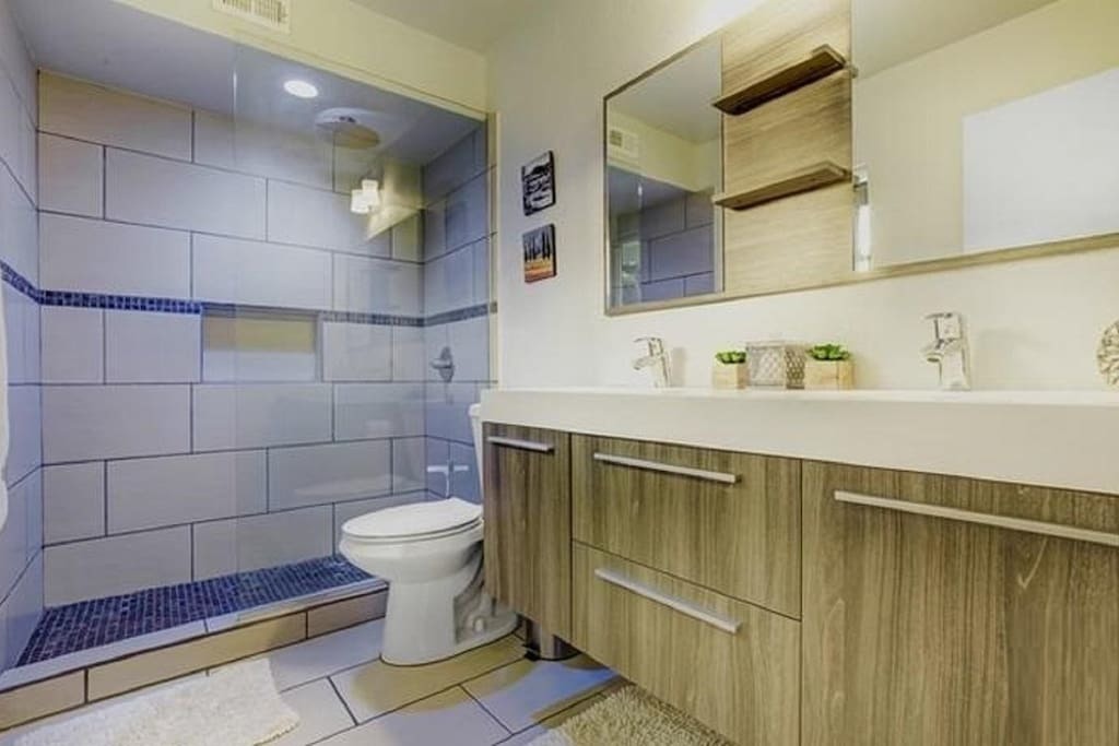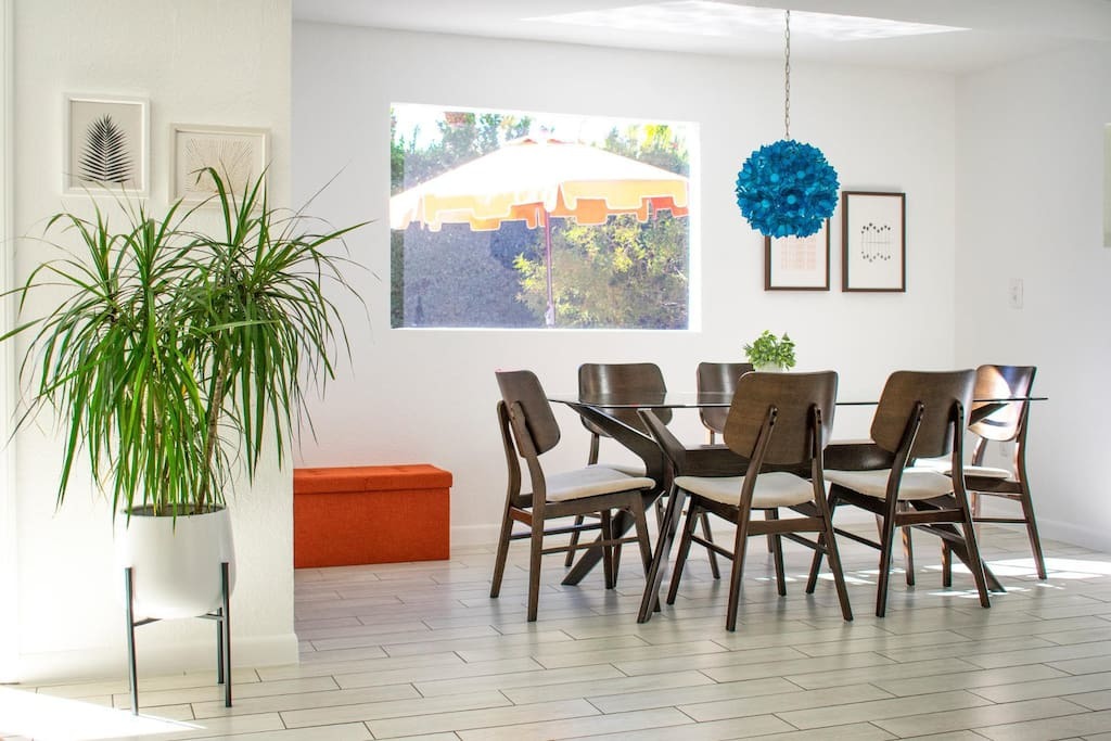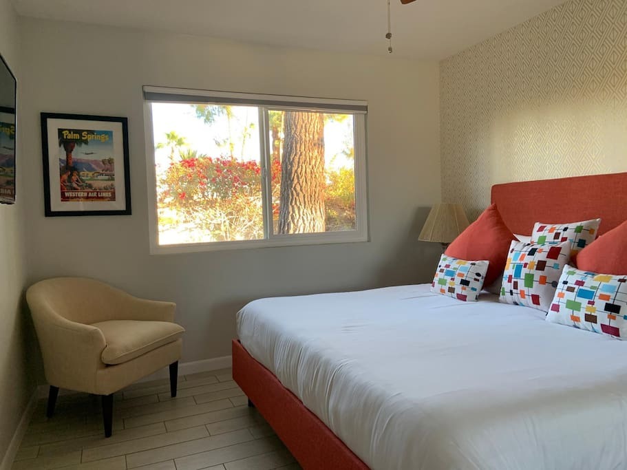 This recently renovated end to end home features porcelain floors throughout, quartz countertops, skylights, LED lighting, rainfall showers, and heated pool and jacuzzi with Pebble-Tec and Kool Deck. Upscale Mid-Century touches everywhere.