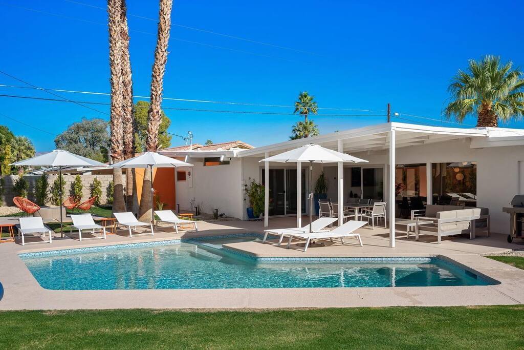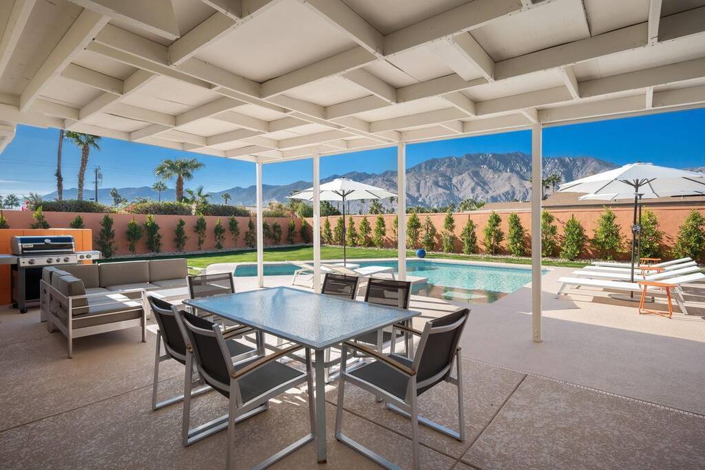 Enjoy mountain views, beautiful sunrises, and gorgeous sunsets from every angle in this Palm Springs residence by renowned architect Hugh Kaptur. It is a resort-like home positioned on a corner lot to maximize the west facing views of the San Jacinto Mountains. The home boasts recent upgrades that include new flooring, paint, equipment, stylish furnishings, and amenities galore. Stresses melt away when you enter the reimagined home and notice the attention to detail in providing creature comforts to relax and enjoy the desert vibe, especially while in the salt-water pool! Three bedrooms and multiple patios provide plenty of room for privacy or hanging out with friends and family. In addition, when you are ready to leave this well-appointed home, you are located only minutes from Downtown Palm Springs, airport, and the 10 freeway. Pack your bags because you will not want to miss out on this vacation home!