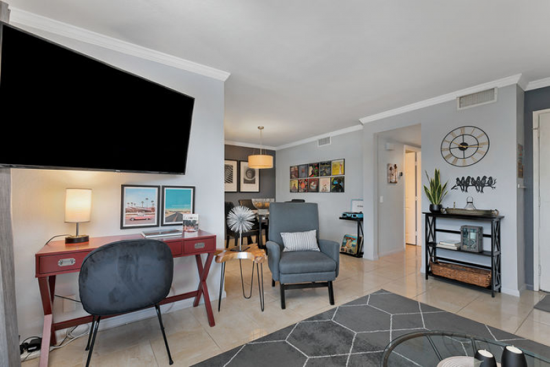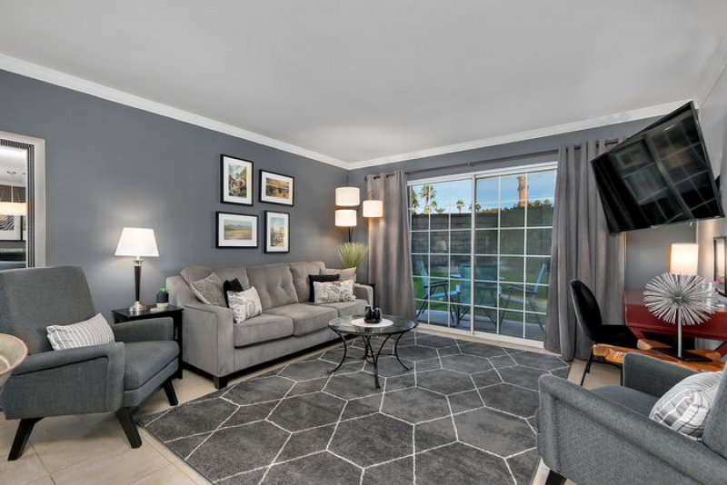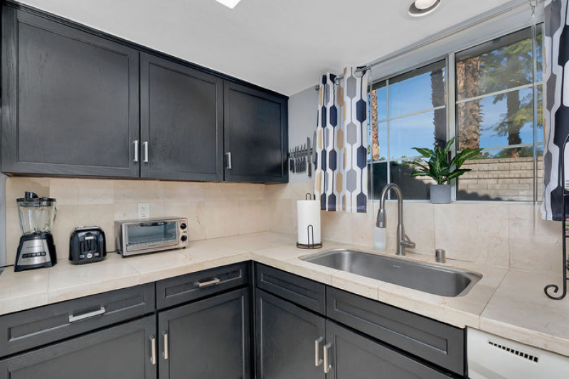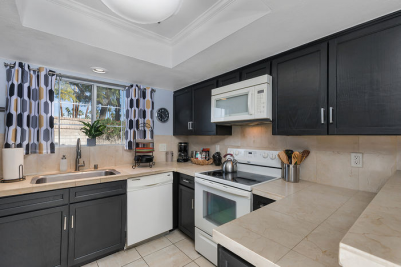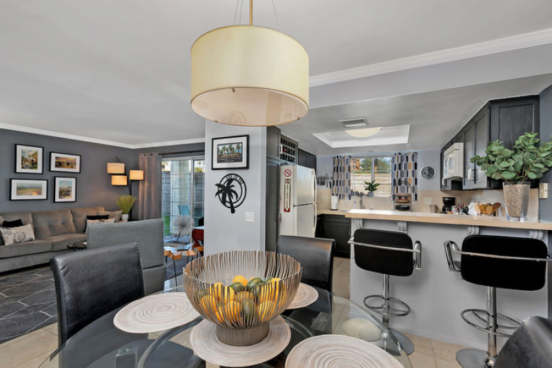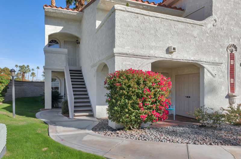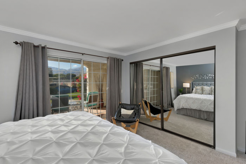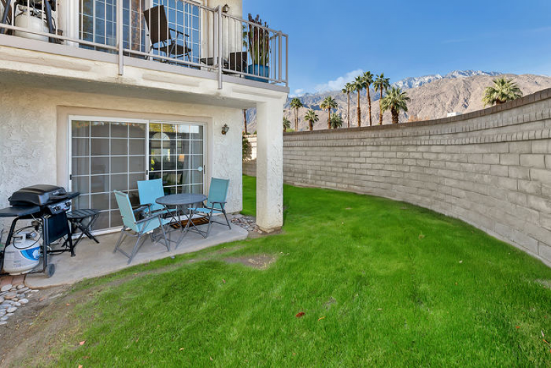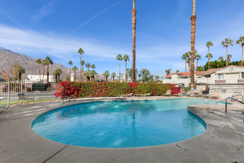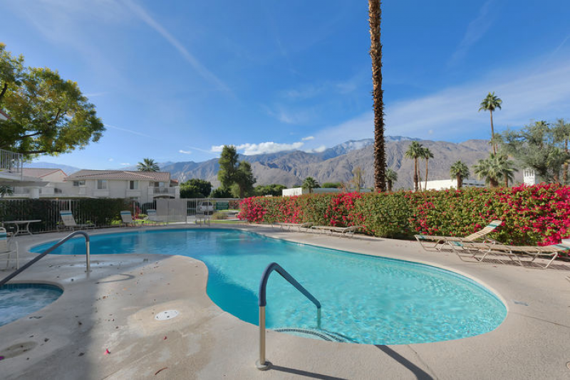 Aire de Paz is part of one of the most desirable gated communities in central Palm Springs, adjacent to the exclusive Mesquite Estates. STUNNING mountains vistas can be seen from both the front and rear patios. There are NO STEPS in this spacious lower level, one-bedroom condo which has the perfect Palm Springs vibe!
