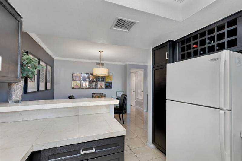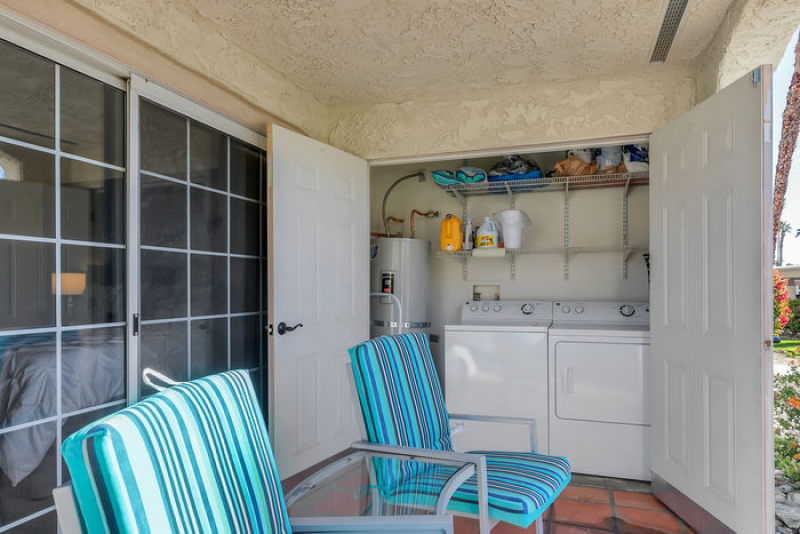 A wraparound yard is a highlight for walking your dog or enjoying the beautiful sunrises and sunsets. Aire de Paz also boasts a spacious living room with a rear patio for your BBQ grilling, two flat screen TVs, a cooks' kitchen with counter bar seating, dining area and so much more! A large master suite has king sized bed, double closet, and outdoor patio area with mountain views! The bathroom features a large walk-in shower. A separate laundry is in the closet on the front patio of this tranquil hideaway. The Mesquite Country Club Estates features several pools/spas, tennis courts and beautifully landscaped grounds, along with walking trails which wind around the grounds and adjacent golf course.